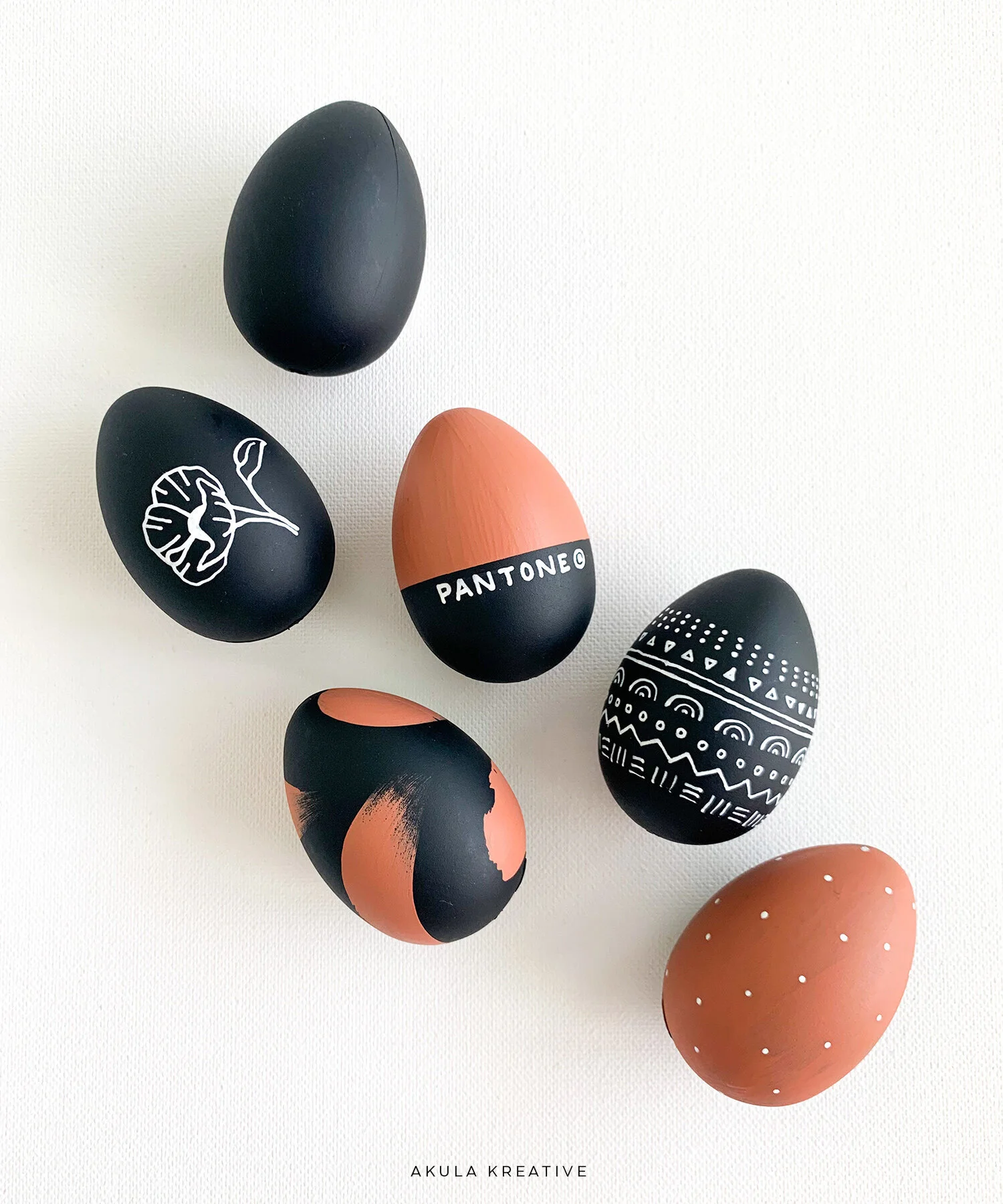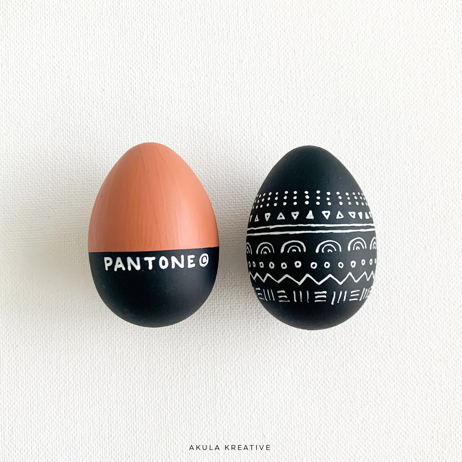 All of today’s trends in 5 little eggs! :) If you’re in a rush, the abstract paint strokes are the fastest (but also slightly trickier to let dry). The mudcloth was surprisingly fun to do because it doesn’t have to be perfect (and drawing on eggs is HARD)!