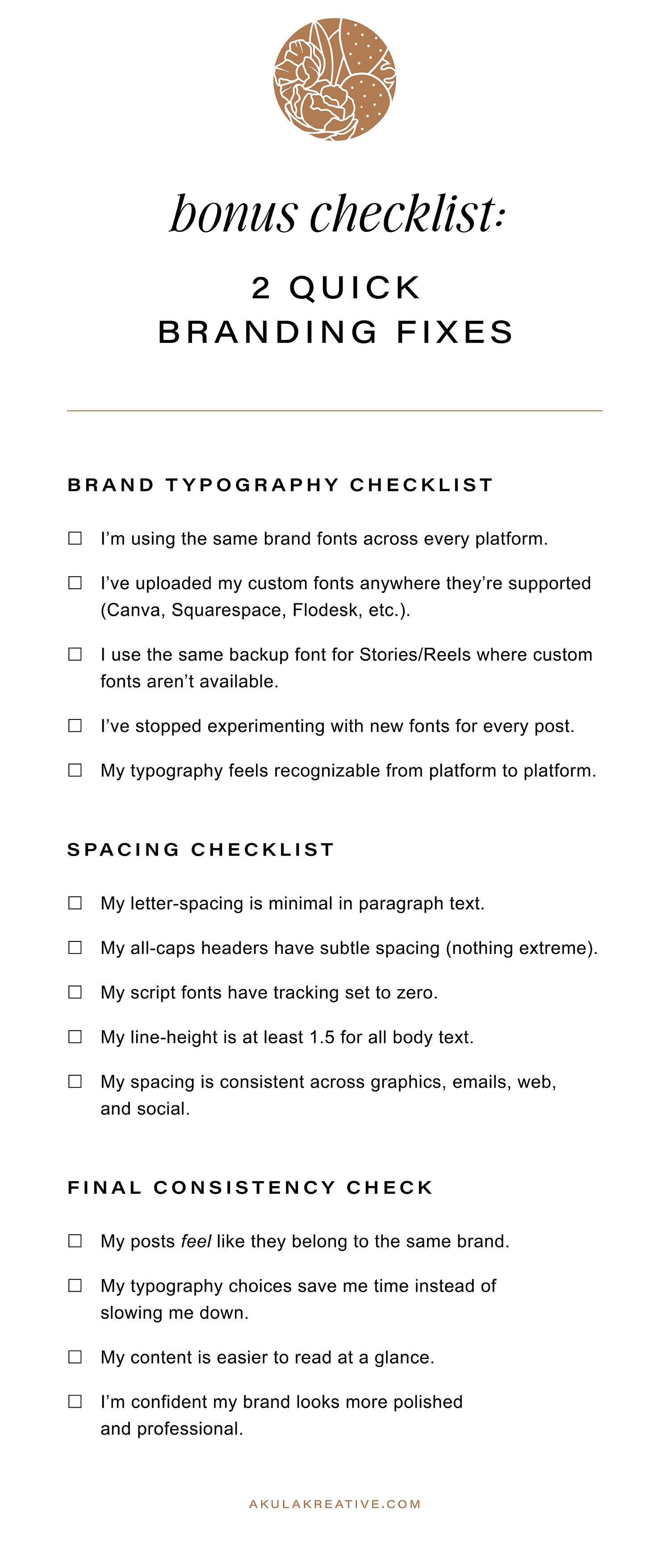 Can’t upload your custom fonts to a platform? Choose the closest match and use it consistently. Platforms like Squarespace, Flodesk, and Canva now let you upload custom fonts, so once they’re in there, you’re set. (Just remember to check your licenses.)